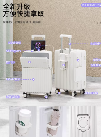 24寸行李箱前置开口多功能女拉杆箱新款密码箱大容量28寸旅行箱男